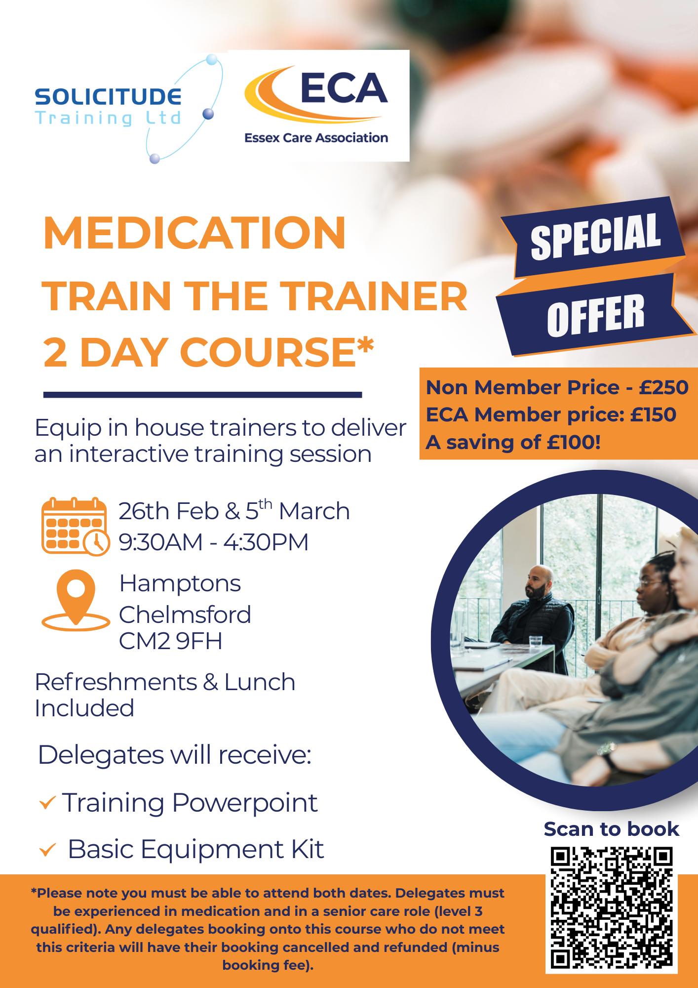 *We have been working closely with our training partner to give our members an exclusive £100 discount off this training course. Please use the code ECAMEMBER to recieve the discount. You will also need your ECA membership number at the time of booking. Please contact office@essexcare.org.uk if you have any queries.